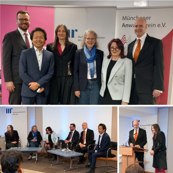 Die Rechtsanwaltskammer München hat zusammen mit dem Landesverband Bayern des Deutschen Juristinnenbunds (djb) und dem Münchener Anwaltverein e. V. am 18.03.2026 eine Podiumsdiskussion zu der Frage „Rechtsstaat und anwaltliche Unabhängigkeit unter Feuer – wie gestalten wir die Zukunft der Anwaltschaft?“ veranstaltet. Weltweit steht die Anwaltschaft unter Druck von autoritären Strömungen. Dabei ist die Unabhängigkeit der Anwaltschaft ein unverzichtbarer Garant für Rechtstaatlichkeit und Demokratie. Wie dies auf Dauer sichergestellt sein könnte, darüber diskutierte Präsidentin Anne Riethmüller mit RA Stefan von Raumer, Präsident des Deutschen Anwaltvereins, RA Chan-jo Jun, JUN LEGALGmbH, RDir Mathias Klement, Bayerisches Staatsministerium der Justiz, und RAin Renate Maltry, Vorsitzende djb Landesverband Bayern, unter der Moderation von Barbara Streidl, Bayerischer Rundfunk.